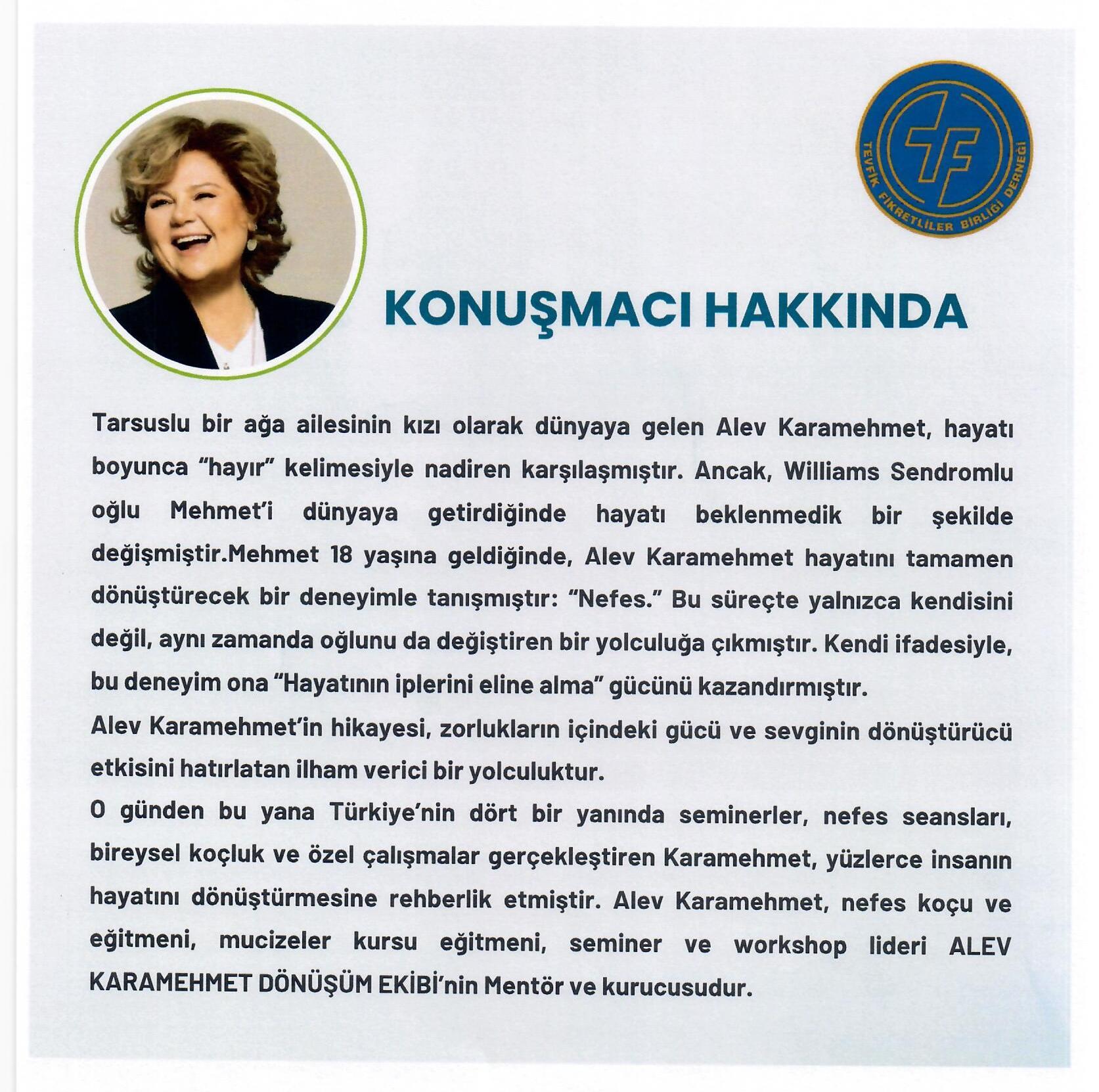 7 Ekim 2025, Salı 18:30 - Mardi Buluşması - TFL'84 - Alev Karamehmet - Zihin Dönüşümü ve Doğal Nefes